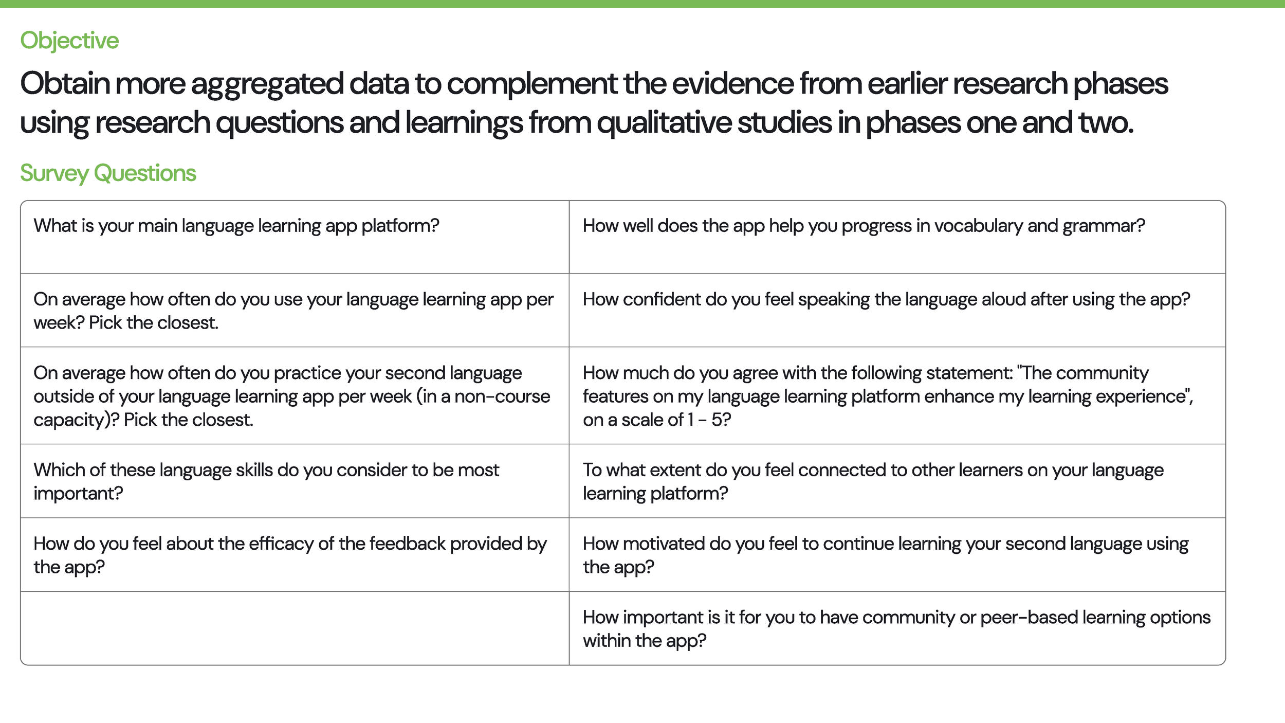 Challenge: Use qualitative and quantitative research methods to identify a problem and then propose a solution for Second Language Learners (SLLs)